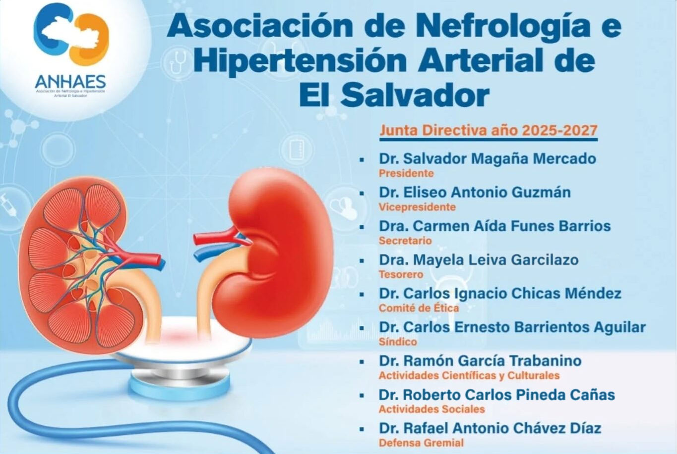 La nueva Junta Directiva electa en la Asamblea General de la Asociación de Nefrología e Hipertensión Arterial de El Salvador quedó compuesta de la siguiente forma: